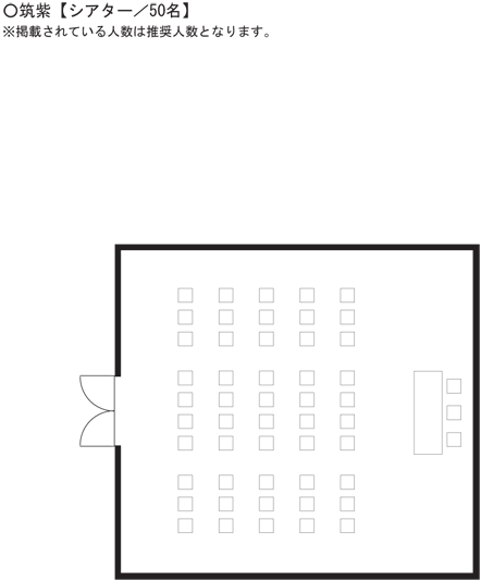 | m2(坪) | 天井高 | 立食 | 正餐 | スクール | ロの字 | シアター | |