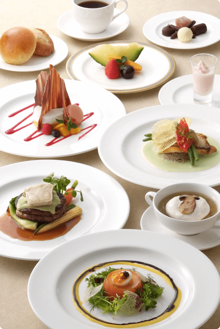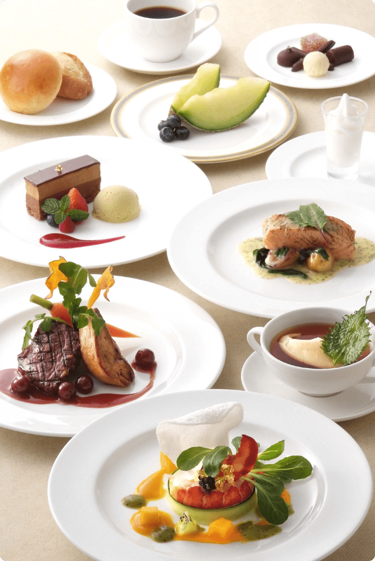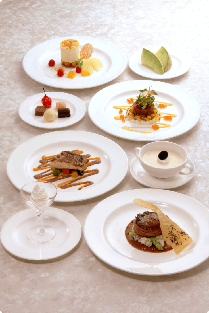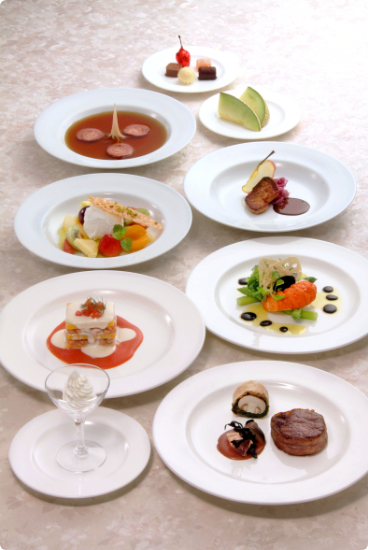 ホテルのシェフならではの腕とアイデアで季節感や時代性などもさりげなく取り入れた味わい深いコースです。