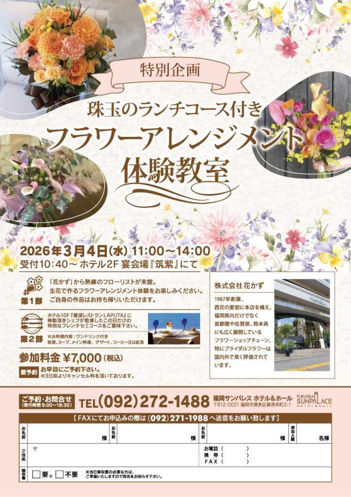 News フラワーアレンジメント体験教室 -珠玉のランチコース付き-