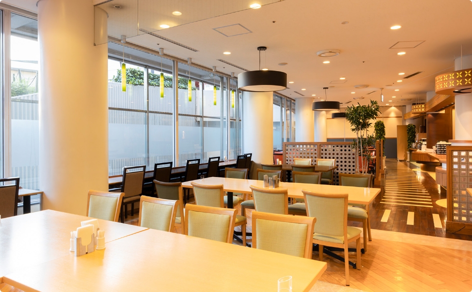 ご朝食はホテル1階の「レストラン&カフェLagoon」にてご用意しております。朝の時間帯は比較的空いておりますので、明るく開放的な店内で、ゆったりとお食事をお楽しみいただけます。