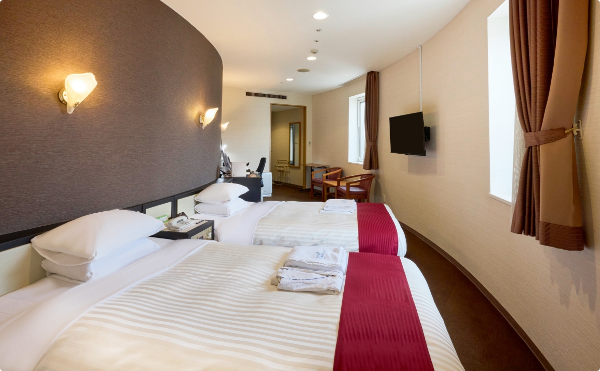 | 客室備品 | ストリーミング対応テレビ、Wi-Fi無料接続、冷蔵庫、加湿空気清浄機、ヘアドライヤー、電話、電気ポット、タオル類、ナイトウェア、室内用スリッパ、靴ベラ |
